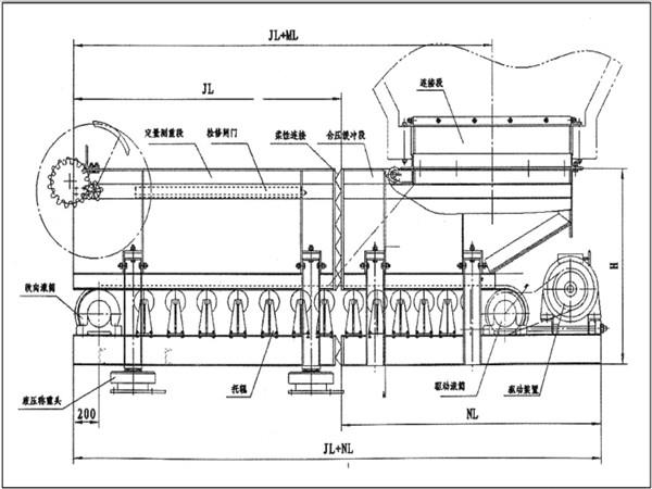 稱重計(jì)量給料機(jī)設(shè)備分為倉壓緩沖段及定量測重段兩段,而兩端中間采用柔性件進(jìn)行連接。稱重計(jì)量給料機(jī)的倉壓緩沖段和地基固定在一起,以此來承受倉壓。而定量測重段的豎直方向一直處于浮動(dòng)狀態(tài),全部重量都?jí)涸谒膫€(gè)液壓稱重頭上,以此來達(dá)到恒定給料的目的。稱重計(jì)量給料機(jī)具有性能平穩(wěn)可靠、噪音小、經(jīng)久耐用等特點(diǎn)。