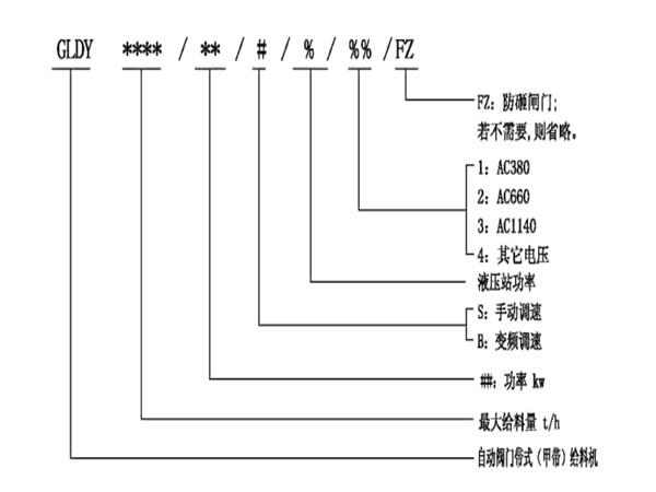 自動閥門帶式(甲帶)給料機的型號說明: